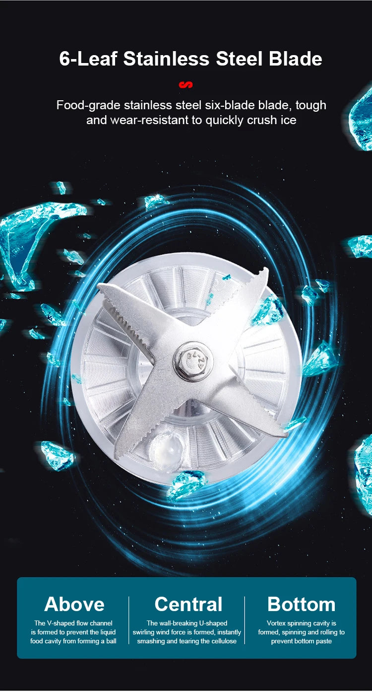 • 6 Stainless Steel Blades – Delivers ultra-smooth blending results.