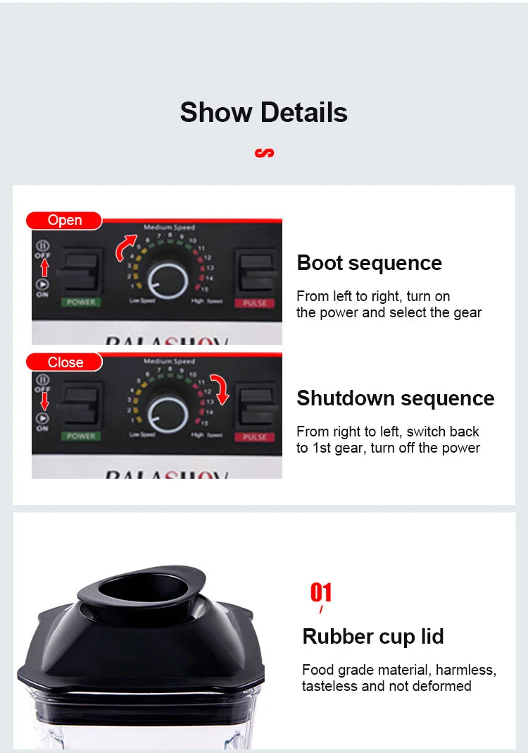 • 2000W High Power – Crushes ice, fruits, and grains in seconds.